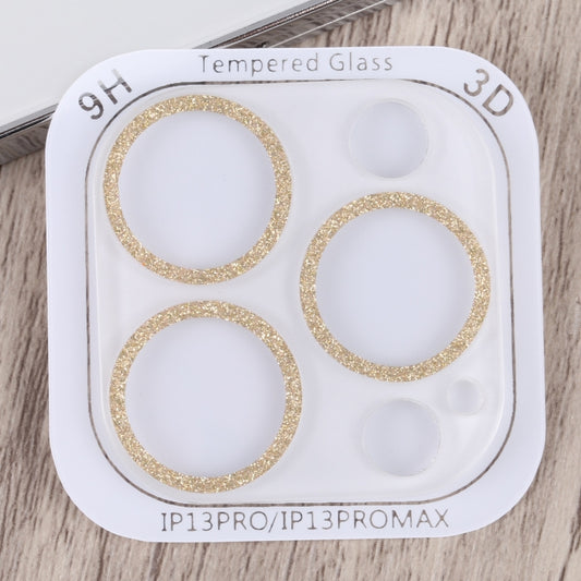 For iPhone 13 Pro / 13 Pro Max Glitter Ring Tempered Glass Camera Lens Film (Gold)