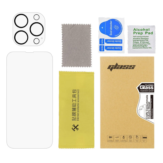 For iPhone 13 Pro Max 2pcs 0.26mm 9H 2.5D Tempered Glass Screen Film with 2pcs Lens Protector
