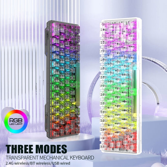 XUNFOX K30 Pro 2.4G + BT + Clavier mécanique filaire transparent à 61 touches avec axe blanc (blanc)
